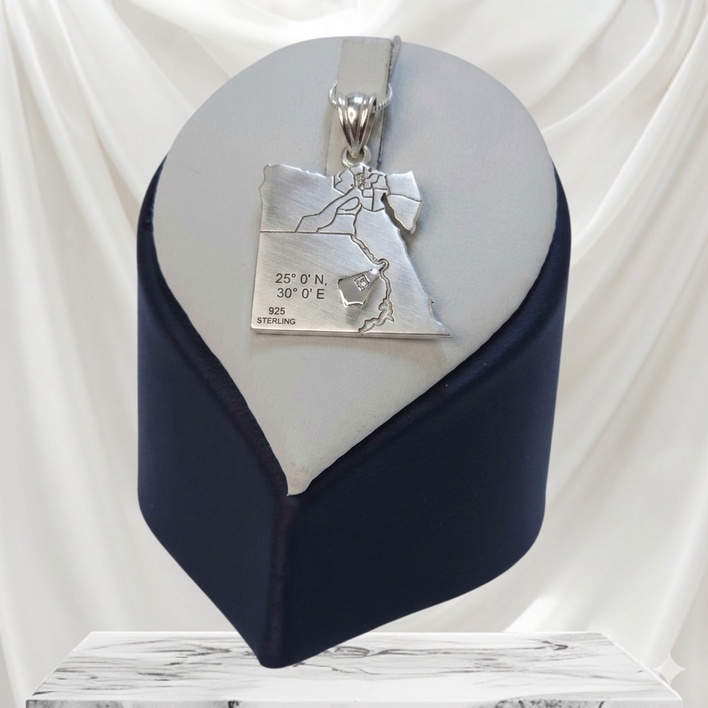 دلاية فضية مصممة على شكل معالم أو خريطة دولة معينة، مع نقش الإحداثيات الجغرافية لمكان تذكاري (مثل مكة، باريس، نيويورك حسب الطلب).