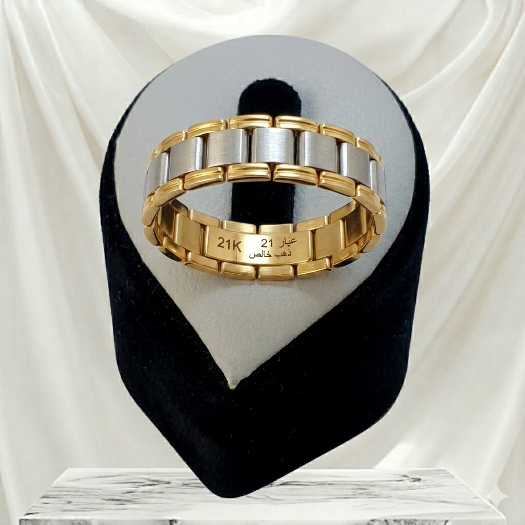 سلسلة كلاسيكية للمحفظة أو الجيب، مصنوعة من الذهب الأصفر عيار 18، بطول 30 سم ونهايات مزخرفة بنقوش رسمية.